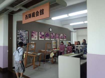 和服に身を包んだ子どもたちが西陣織でできた小物を販売していました。