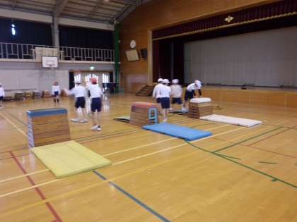 とび箱の用意もみんなで,協力しながら,準備