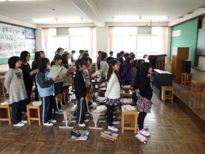 6年生を送る会が終わり,卒業式で歌う合唱曲の練習に