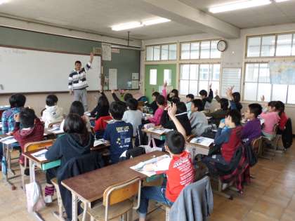 いよいよ6年生の授業が始まりました。今日は,算数です。みんな,先生のお話を聞き,
