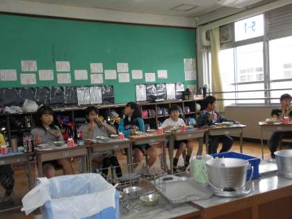 そして,給食の時には,円になってみんなで牛乳で乾杯をしてお誕生日をお祝いしています。