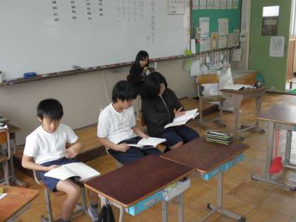 グループに分かれ,役割を決めて,音読の工夫を考えながら練習に励んでいます。