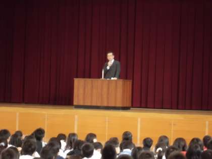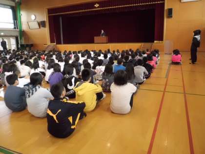 校長先生から「決まりを守って友だちを大切にして学校生活を送りましょう」