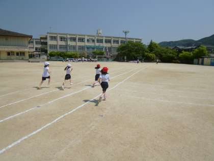 運動会の練習が始まりました。体育の授業で,初めて50m走を走りました。腕を振って,全力で走りきることができました。本番までに練習を重ね,さらにスピードが出せるようにしたいと思います。