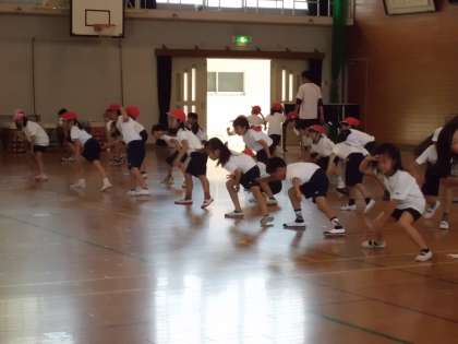 先に,2年生から運動会で踊る演技を見せてもらいました。