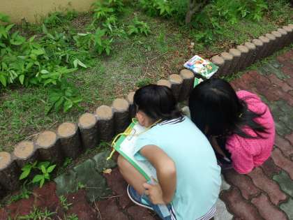 理科の学習「自然のかんさつをしよう」で校内の生き物を