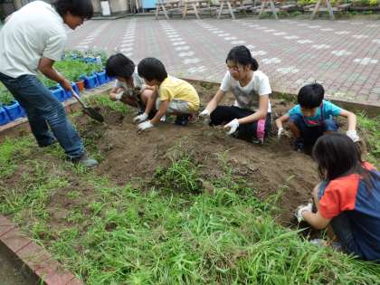春にみんなで植えたじゃがいもをほりおこしました。