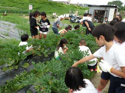 今回は4年生全員の人数分の個数は収穫できなかったので、先に2組のみんなに1つずつ持って帰ってもらいました。今回は実が小さすぎて収穫できなかった実がまだまだあったので、夏休み中に収穫し、1組のみんなにも持って帰ってもらって、自分たちでつくったズッキーニを味わってみてほしいと思います。