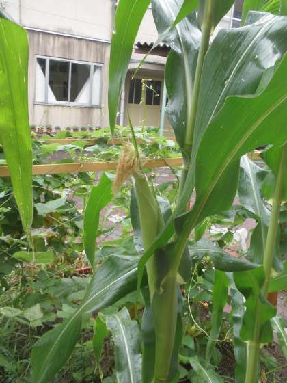 トウモロコシも,実がふくらんできました。