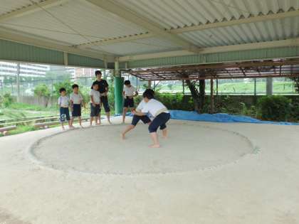 毎朝土俵では,すもう部の子どもたちの元気な声でいっぱいです。