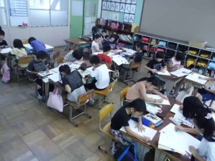 子どもたちは,自分たちが育ててきたヒマワリとホウセンカの記録をもとに,