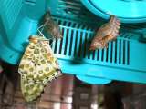 昔は九州から山口県のあたりにまでしか生息しなかったナガサキアゲハが10年ほど前から近畿地方でも見られるようになりました。温暖化の影響でどんどん生息地が北へ上がってきているようです。わくわくランドでは小鳥や昆虫の飼育を続けていますが,もうすぐナガサキアゲハが羽化し,しばらくにぎやかになることと思います。