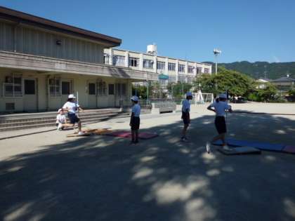 これは,体育「走り高跳び」の様子です。