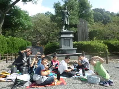 京都市を一望できる高いところに建っている田辺朔朗像を見て,