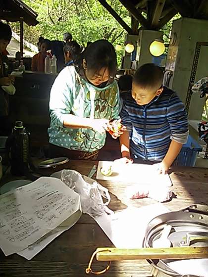 昼食は野外炊事のハヤシライスです。