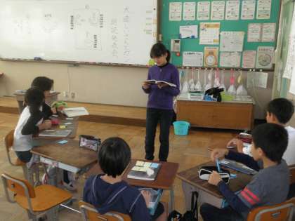 今日は,学習して自分で読みとったことを音読に表す『朗読』の発表会をおこないました。