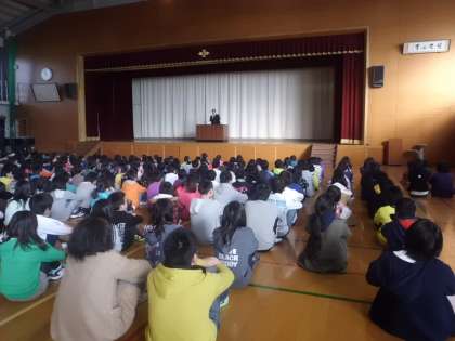 校長先生の話を聞き,各クラスで決めた人権標語を発表しました。