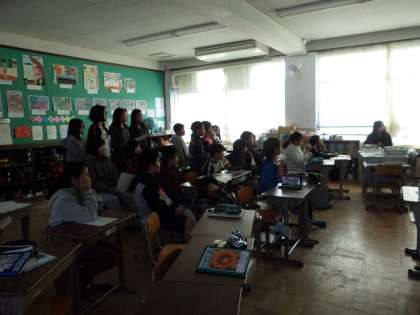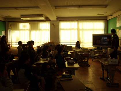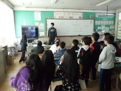 写真は自分たちが跳んでいる姿をビデオで確認しているところです。