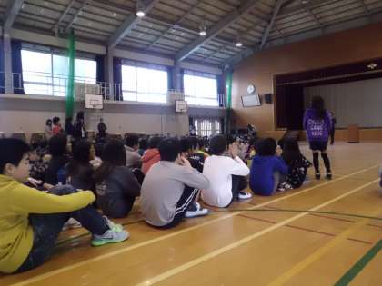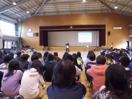 全校合唱の後,校長先生の話を聞き