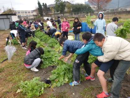 4年生みんなで育ててきた「大根」がついに収穫の日を迎えました。