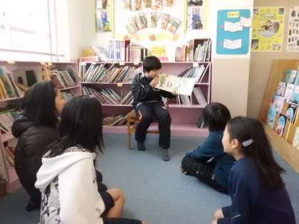 図書委員会の子ども達が,中間休みに読み聞かせをしてくれています。