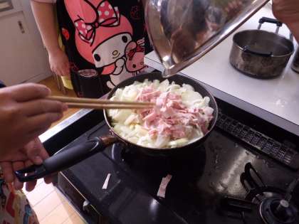 ベーコンと炒め合わせ,ジャーマンポテトの完成です。