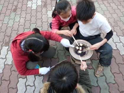 お餅に焼き色が付き,パリッと割れる瞬間に「わぁ!」と歓声が上がっていました。