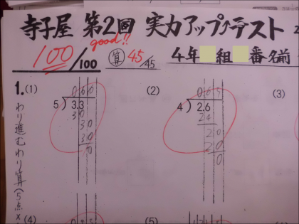 金曜日の寺子屋では、月〜木の総復習の「実力アップテスト」で力試しをしています。