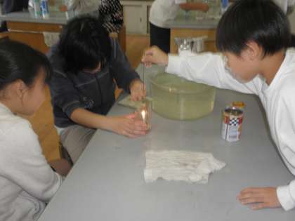 6年生では,今,理科の時間に「ものの燃え方」の学習をしています。