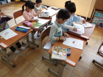 種の形や色をよく見てさわって観察し,スケッチしました。