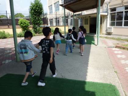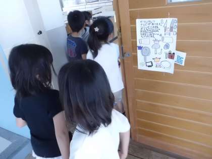 学校の中を1年生を連れて探検です。