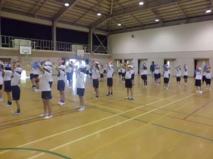 運動会で踊る,よさこい鳴子踊りの合同練習が