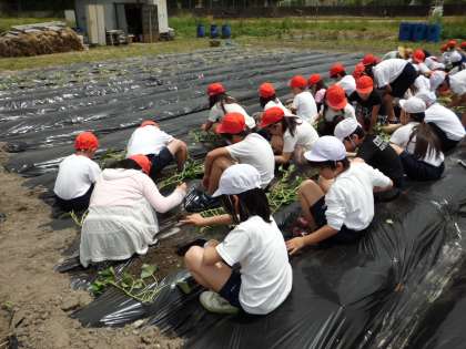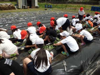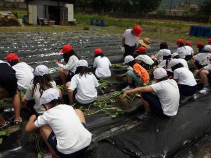 5/14 3時間目にサツマイモの苗を植えに「ふれあい農園」行きました。