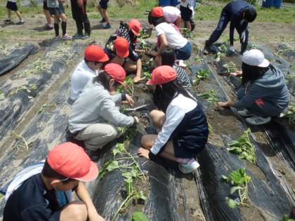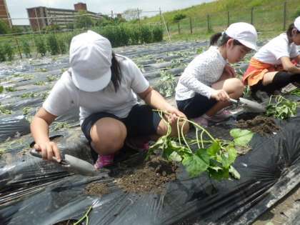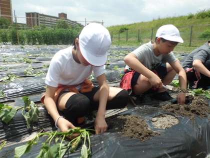 ふれあい農園でさつまいもの苗を植えました。