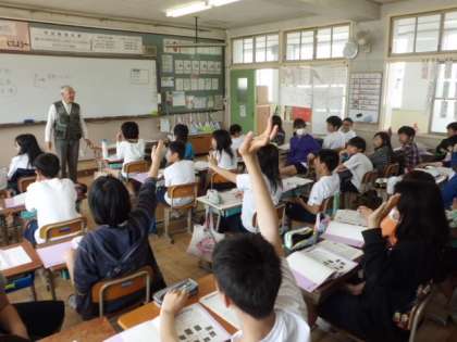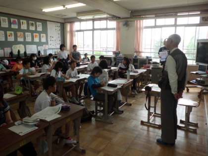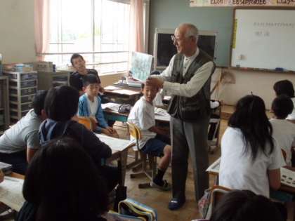 先日,ゲストティーチャ−として「おおみちょうオオムラサキを守る会」の方に来ていただき,オオムラサキのことについて教えていただきました。