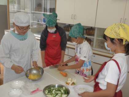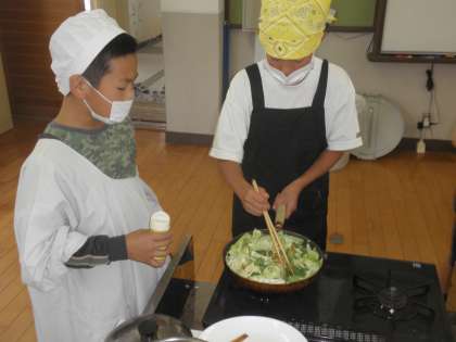 子ども達は,火の通りにくいニンジンから順にいため,うまく味付けしておいしくいただくことができました。