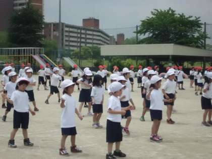 運動会にみんな披露するために一生懸命練習しました。