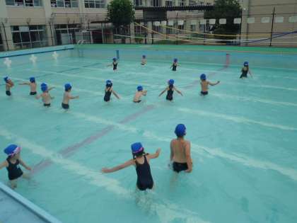 絶好のプール日和の中, 1年生のプール開きがありました。