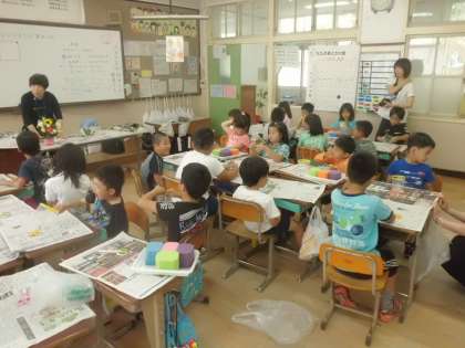 本日、花育活動でフラワーアレンジメントを行いました。
