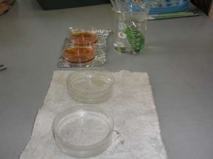 6年生では,育てているジャガイモの葉っぱを使って,葉に日光が当たると「でんぷん」が作られるのかを実験で確かめました。