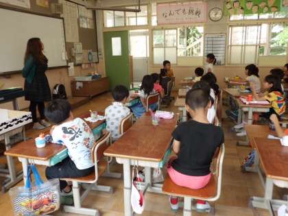 子どもたちは,持ってきた歯ブラシで,毎日給食のあとに歯を磨く姿が見られました。
