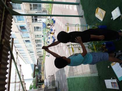 また,つるがにょきにょきのびてみんなの背の高さを追越しました。