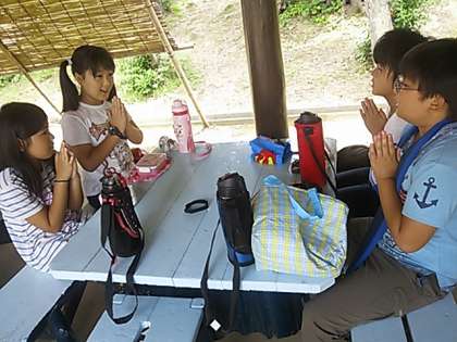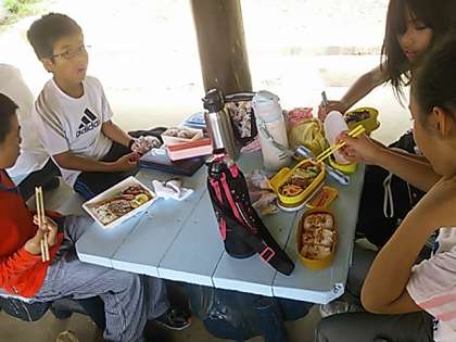 おうちの人に作っていただいたおいしいお弁当を食べます。