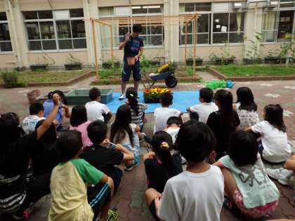 一人一鉢の鉢植えを作っている様子です。