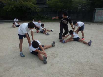 開会式が始まると,少し緊張した様子でしたが,準備運動も念入りに,子ども達は気合十分です!