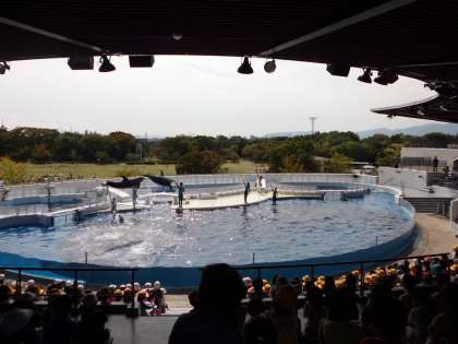 イルカショーを見るために,イルカスタジアムへ行きました。