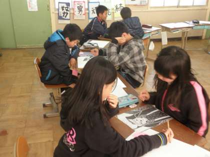 6年生は,版画で取り組んできた作品の鑑賞会をおこないました。