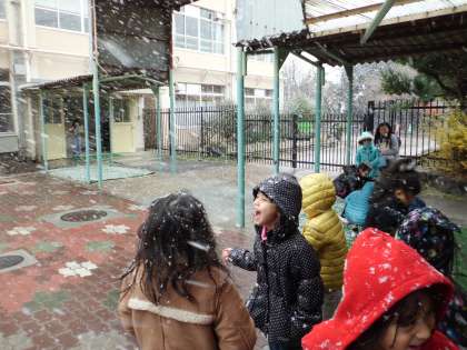 雪はうっすらですが,積もり,子どもたちは「雪だ〜♪」