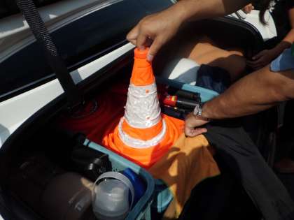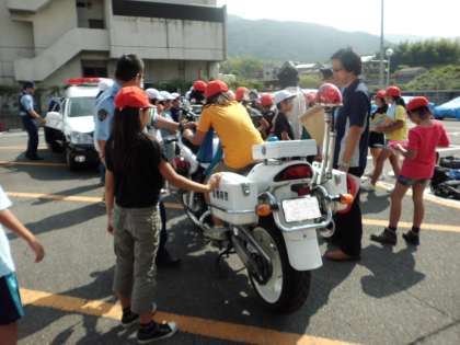 白バイに乗せていただいたり,パトカーの内部やトランクの中身を