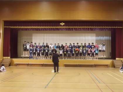 そして6年生は合唱とロックソーランを発表して,伝統の法被を5年生に